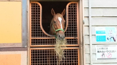 厩舎内では大きな扇風機で風を馬房に送っているため、馬は風を感じる内側に行ってしまうんでしょうかね。